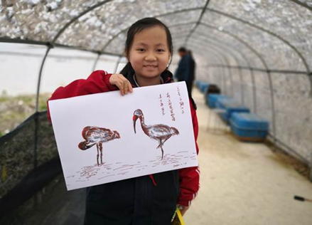 同学们第一次通过专业观鸟望远镜,看到了白鹤、小天鹅、鸿雁、白额雁、灰雁等越冬候鸟,看到了生长近60年的十里樟树林,看到了栖息在鱼塘的被称为夏候鸟的白鹭、夜鹭还没有南迁,显得异常兴奋,有人还脱口而出“一行白鹭上青天”“落霞与孤鹜齐飞”。同学们对鄱阳湖中“水-草-鱼-鸟-人”间的生态关系也有了初步认识,知道了芦苇与南荻的区别,湿生植物苔草是鲤鲫鱼繁殖产卵时的附着物,见到了“枫叶荻花秋瑟瑟”中的荻花,白鹤等喜食的沉水植物苦草。在鄱阳湖渔民捕捞现场附近观察到的鸬鹚、白鹭、赤麻鸭、反嘴鹬等,也引来同学们的惊喜。在五星白鹤保护小区摄影展厅,周海燕董事长详细地给同学们介绍了白鹤及鄱阳湖候鸟知识,回答问题正确的同学还获得了纪念品。下午在藕遇白鹤现场,同学们近距离观察了白鹤、小天鹅、绿翅鸭、黑水鸡、鸿雁、灰雁等越冬候鸟,还现场进行了写生,画出他们观察到的白鹤。